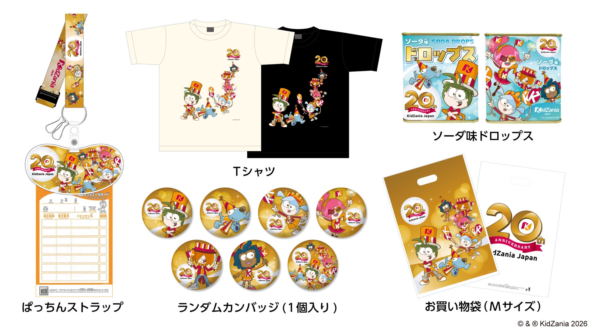20 周年のロゴをあしらった、限定デザインのオリジナルグッズを販売いたします。20 年間の感謝を込 めて、アニバーサリー期間を彩る特別なアイテムが続々と登場いたします。