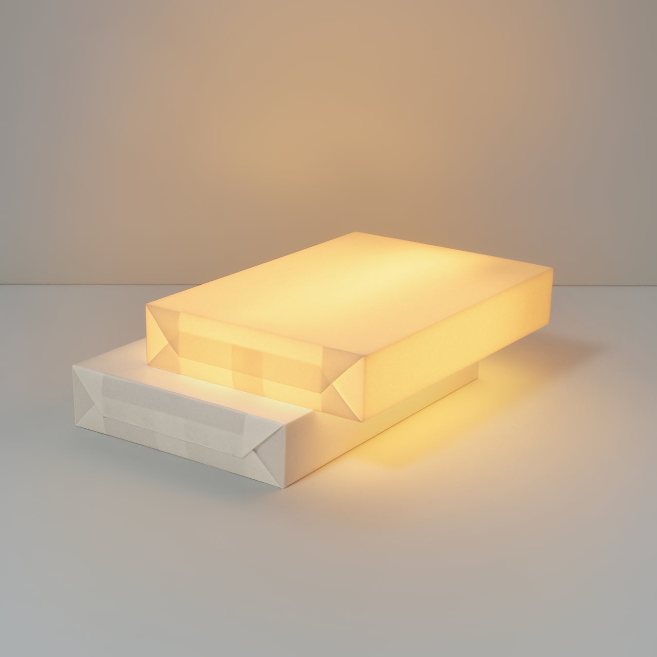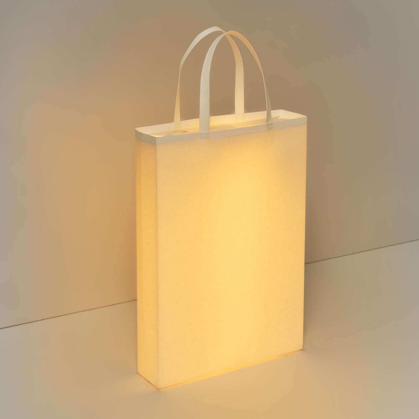 「大直は、1000年の和紙の歴史ある市川三郷で和紙の製品開発をしています。深澤さんと初めに取り組んだSIWAというブランドで破れない和紙“ナオロン”を使った贈り物の製品開発をしておりました。今回開発した3製品のうち500枚入りのコピー用紙を模したA4ライトとそれがぴったり入るA4ライトバッグがセットになったものはこの“ナオロン”を使っています。コードレスなので自由に持ち運びができるようになっています。」
