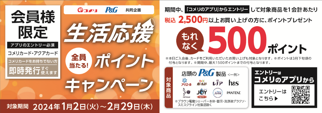ポイントキャンペーンのご応募はコメリアプリが便利でお得です。