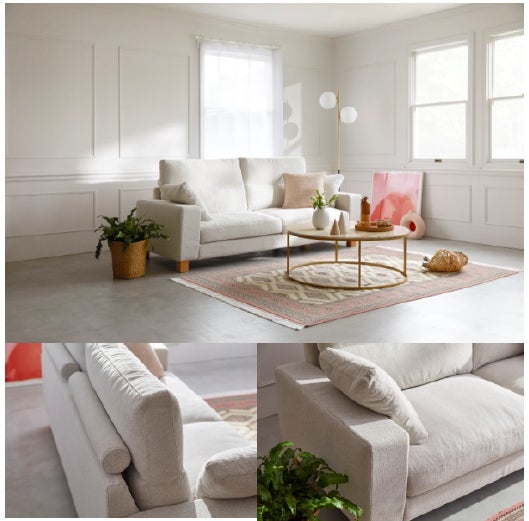 アイボリーのファブリックはお部屋に合わせやすいので、クッションカバーやラグはお好みで。