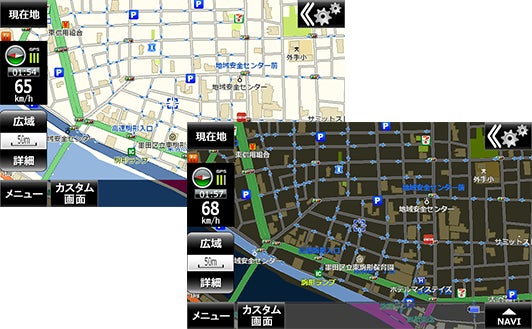昼夜モード自動切替機能を搭載し、現在時刻をもとに地図の昼夜モードが自動的に切り替わります。