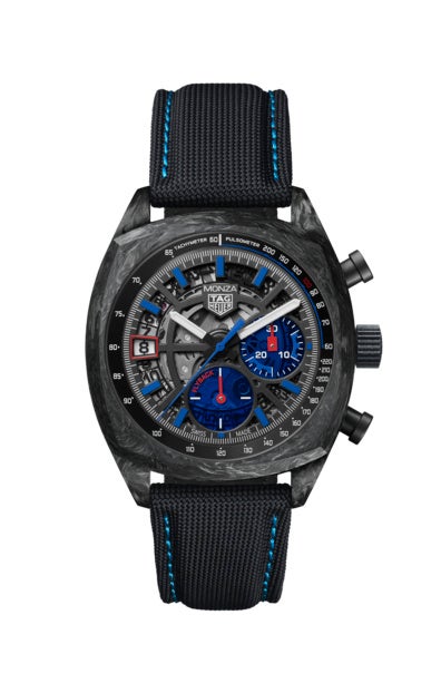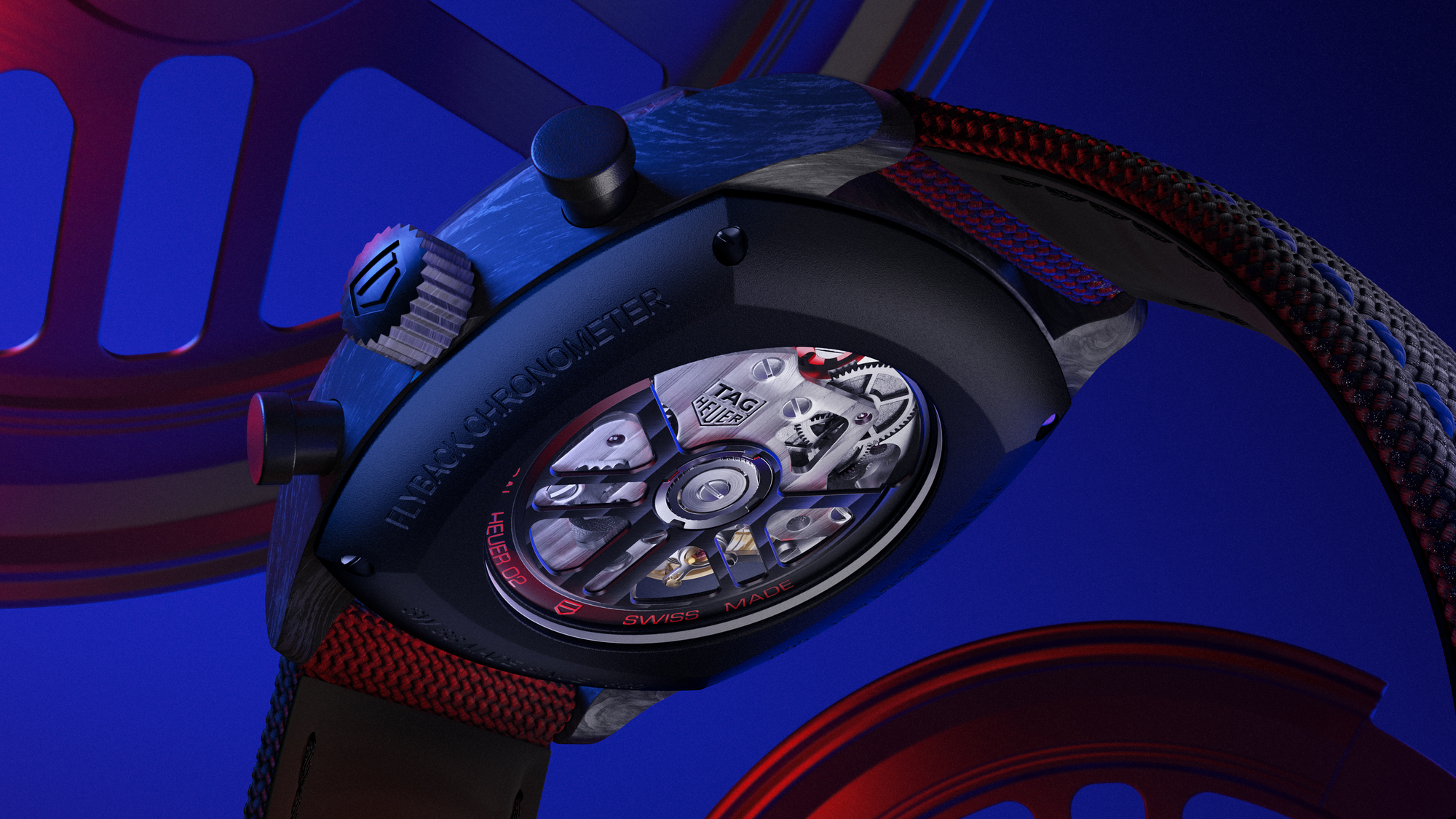 新作「タグ・ホイヤー モンツァ キャリバー ホイヤー02 フライバック クロノメーター」は、超軽量で耐久性に優れたカーボン製の42mmケースを採用したスペシャルエディションです。