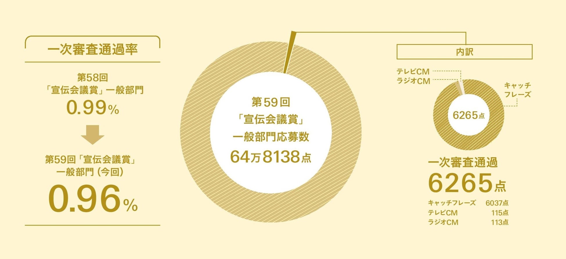 厳正な審査の結果、キャッチフレーズ部門6037点、CM部門ではテレビ、ラジオあわせて228点が通過。通過率は0.96%と、昨年度の0.99%よりさらに狭き門となりました。月刊『宣伝会議』3月号の誌面で、最初の関門を突破した通過者の方々のお名前を発表いたします。