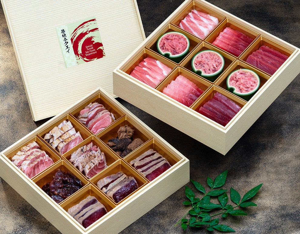 豊洲市場のマグロを満喫する贅沢重…本マグロ・インドマグロ・メバチマグロという3種のマグロを贅沢に使用し、下段「黒の段」には色鮮やかな刺身を。上段「朱の段」には漬けや炙り、希少な目下肉を使ったユッケなど、多彩な調理法でその魅力を最大限に引き出しました。 https://www.tsukijiichiba.com/user/product/38440