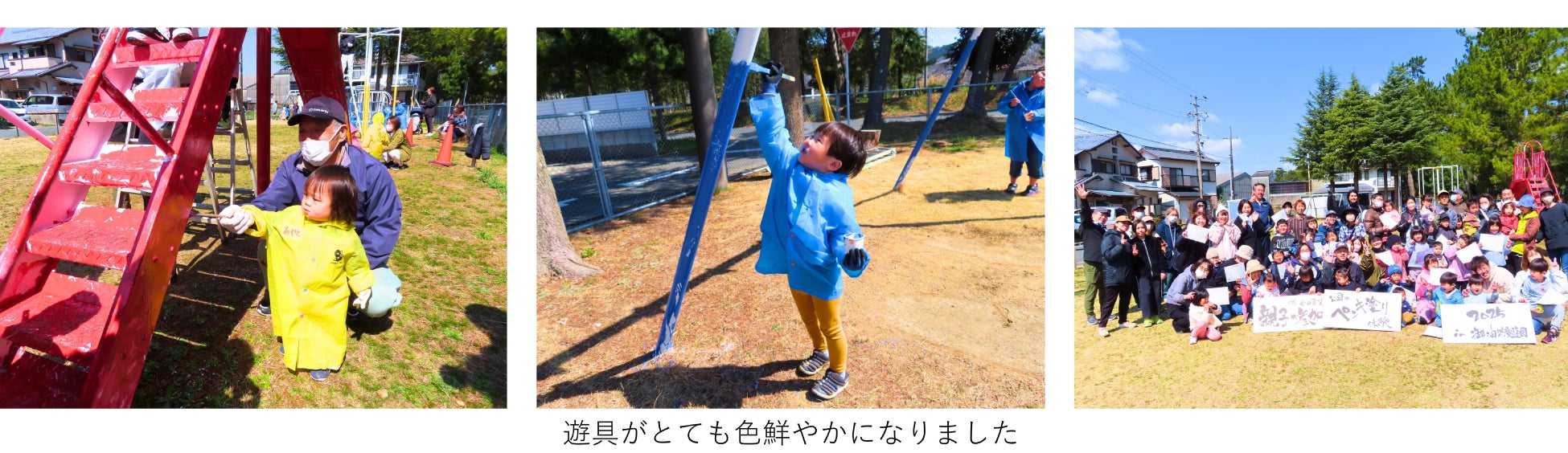参加した保護者の方からは、「普段できないペンキ塗りを親子で体験できて、子どもも夢中になって取り組んでいました。『ここ、自分が塗ったんだよ!』と自慢げに話してくれる姿が印象的でした」「スタッフの皆さんがとても親切で、子どもにも優しく声をかけてくれてありがたかったです」「遊具を自分の手でキレイにすることで、『誰かが手入れしてくれているんだ』という気づきがあったようです。遊具を見る目が変わった気がします」「家ではなかなかできない“汚れる体験”ができて、子どもたちは大満足!またぜひ参加したいという声が多く、親としてもうれしかったです」と感想を頂きました。