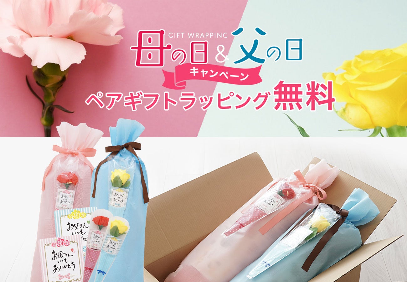 お母さん用・お父さん用にそれぞれカラーを選んで贈ることができ、「母の日特別ラッピング」「父の日特別ラッピング」を無料でご利用いただくことができます。