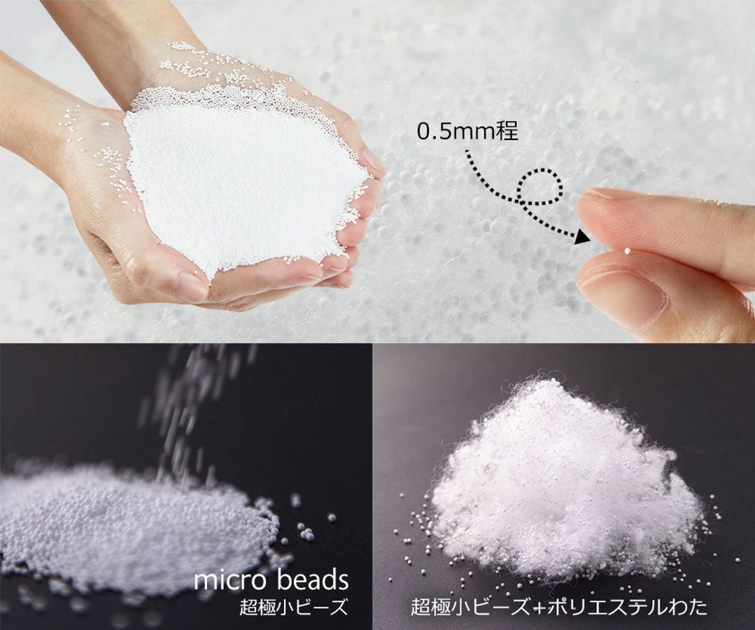 ・中素材 ポリエステル100%(超極小ビーズ95%、ポリエステルわた5%)