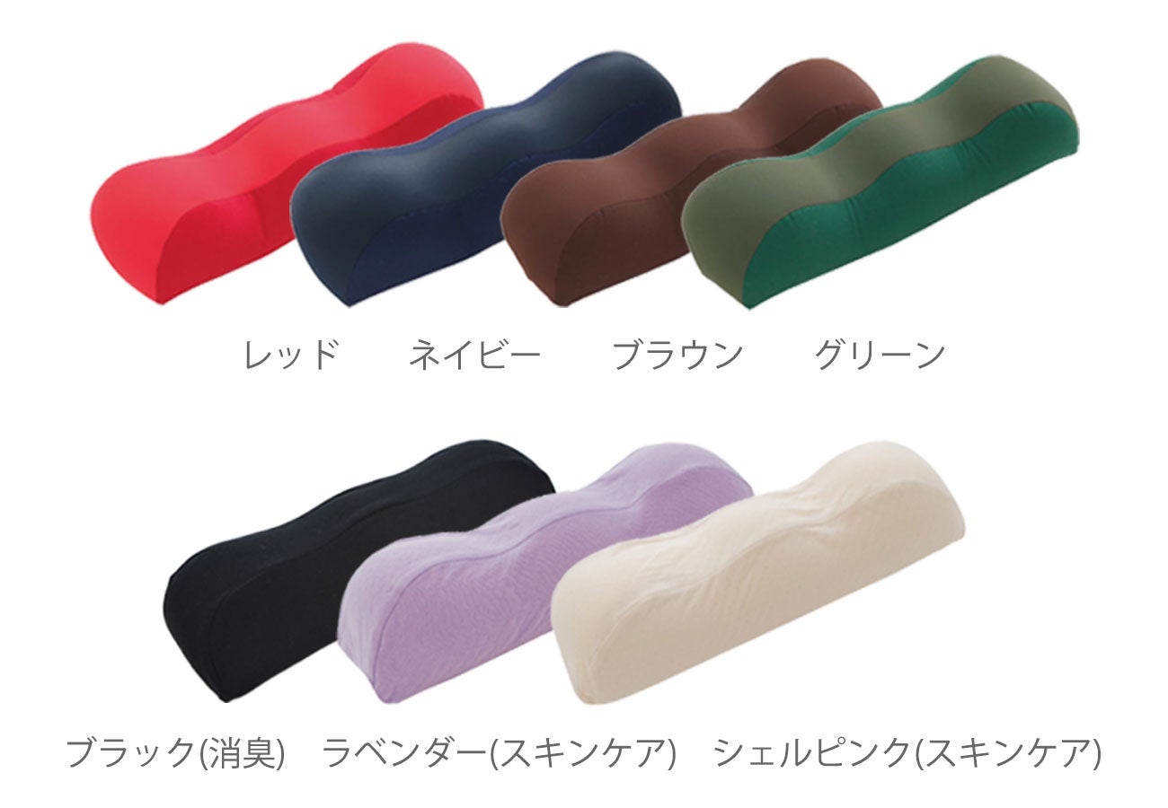 お母さん用には、「レッド、ネイビー、ブラウン、グリーン」4つの標準タイプと、スキンケア機能カバーが付いた「シェルピンク、ラベンダー」の2つ、合わせて6タイプから足枕をお選びいただけます。お父さん用には、お母さん用と同じ4つの標準タイプと、消臭機能カバーが付いた「メンズブラック」の計5タイプからお選びいただけます。