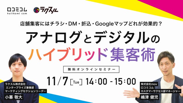 【2023年11月7日(火)mov×ラクスル共催セミナー】店舗集客にはチラシ・DM・折込・Googleマップ※どれが効果的?アナログとデジタルのハイブリッド集客術