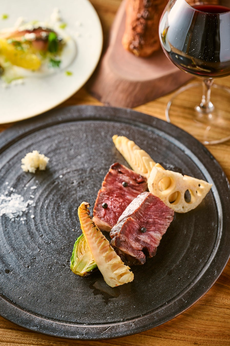 (natuRe のシグネチャーメニュー。環境に配慮した経産牛を使用)