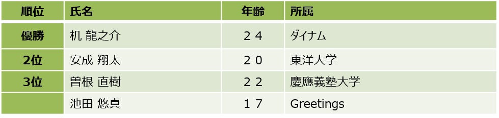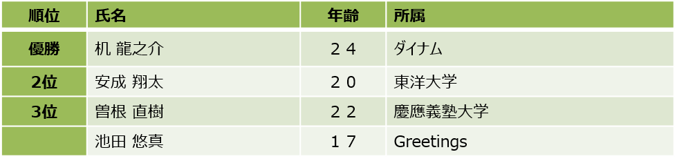 【男子優勝者 机 龍之介選手コメント】
