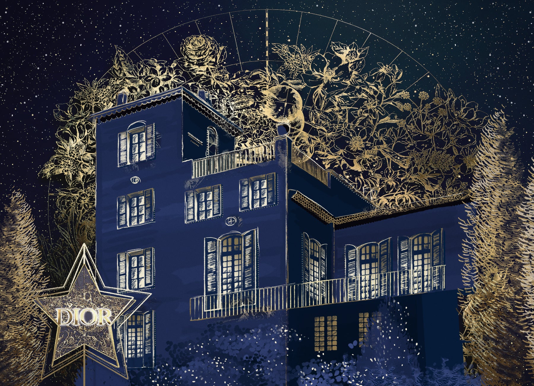 ディオールなどのアイコニックなアイテムやホリデーコレクションがテーブルの上でまばゆく煌めき、星々と