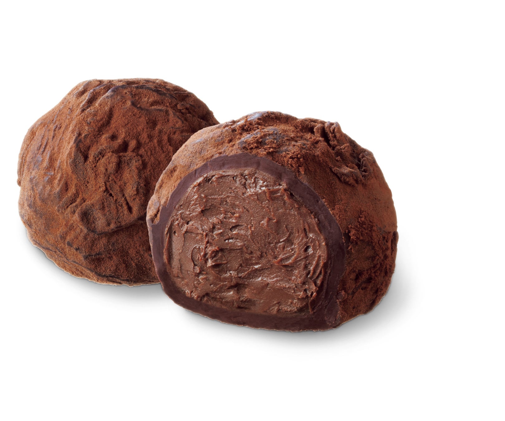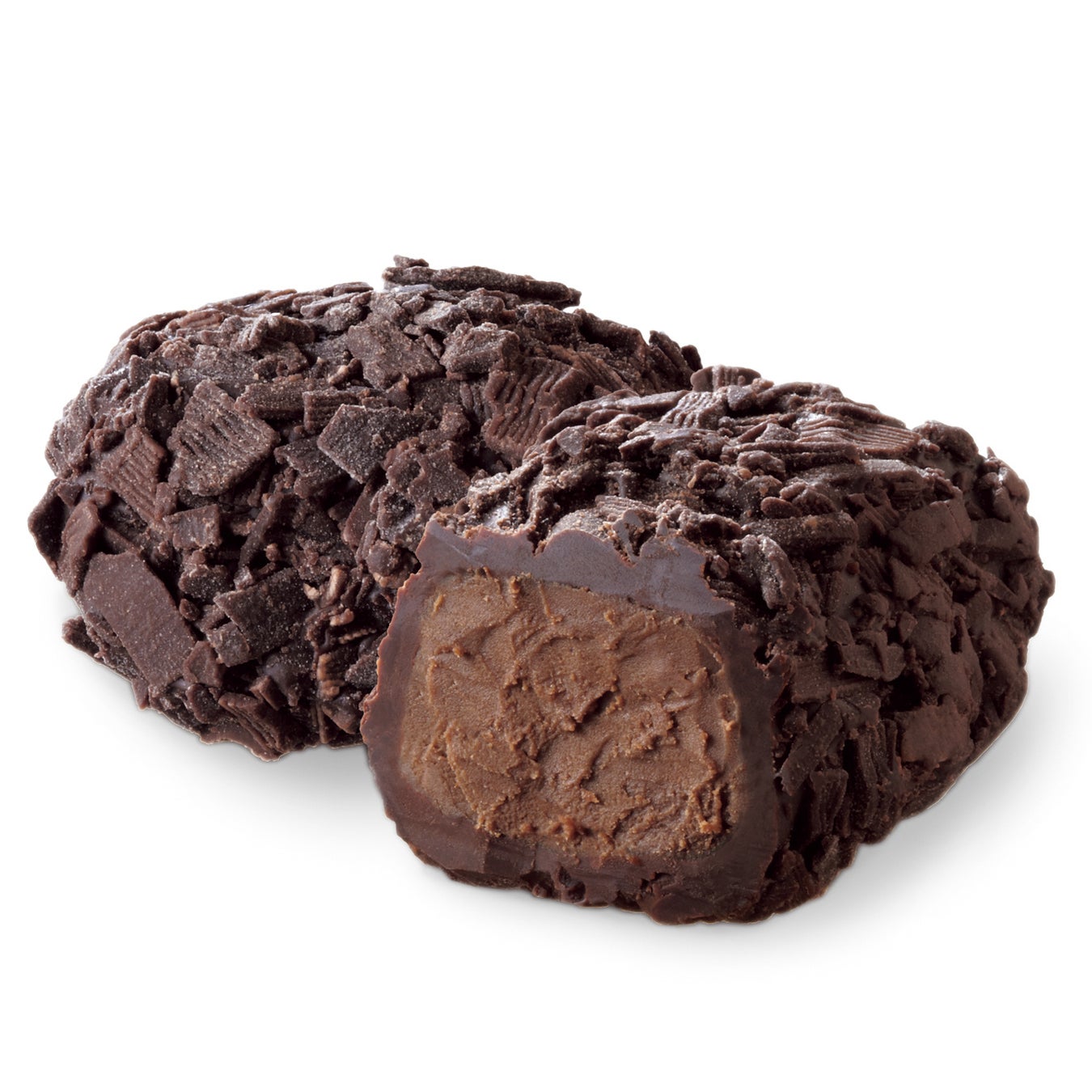 1950年誕生。風味豊かなプラリネムースをダークチョコレートで包み、 ゴディバ初のプラリネトリュフとして、創業者ピエール・ドラップスが愛したダークチョコレートフレークで飾りました。味わい深く軽やかで、当時そのままの形のトリュフとして愛されてきた作品です。