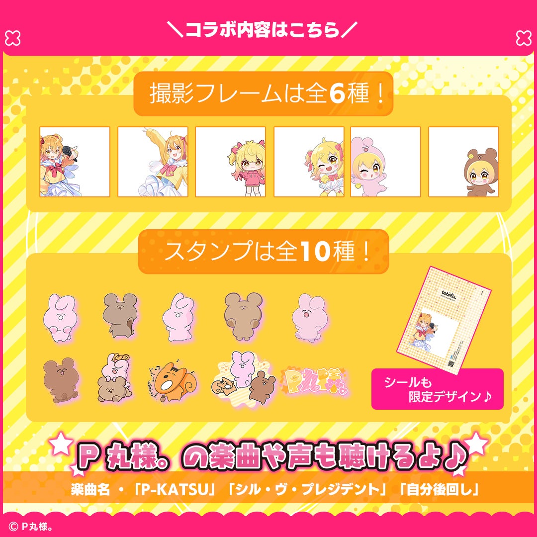 実施内容 :「P丸様。」と一緒に撮影できるコラボ限定の撮影フレーム全6種、