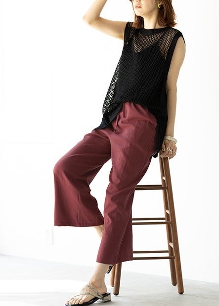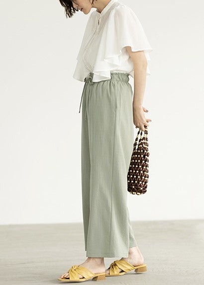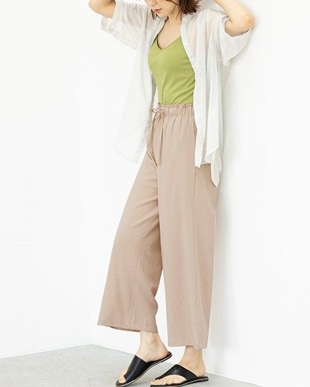 ■特長:リネンライク素材で涼やかに仕上げた、暑い季節にうれしい接触冷感機能付きのワイドパンツ。