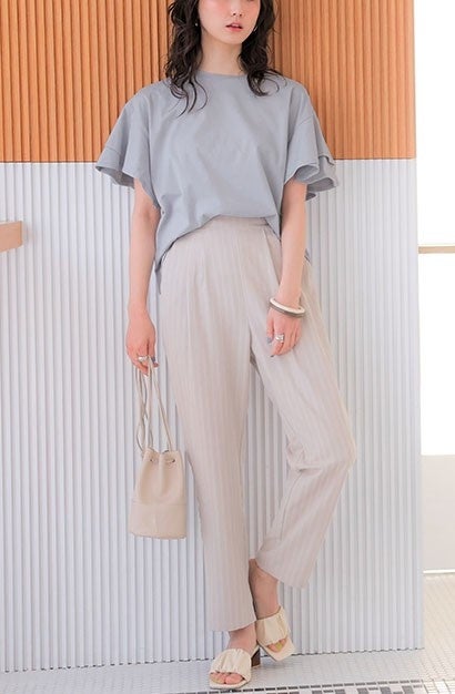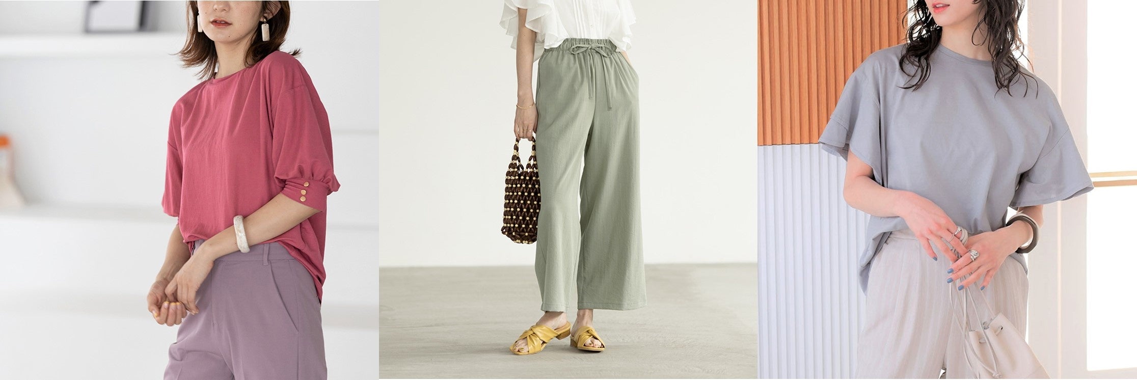 今回は、真夏に絶対手に入れたい商品をピックアップ。オフィスシーンでもサマになる「接触冷感!袖ボタンボリューム袖カットソー」、リラックス感のあるシルエットが印象的な「冷感リネン風イージーワイドパンツ」、2枚重ねのフレアースリーブが上品な「冷感フレアー袖カットソー」の3商品です。