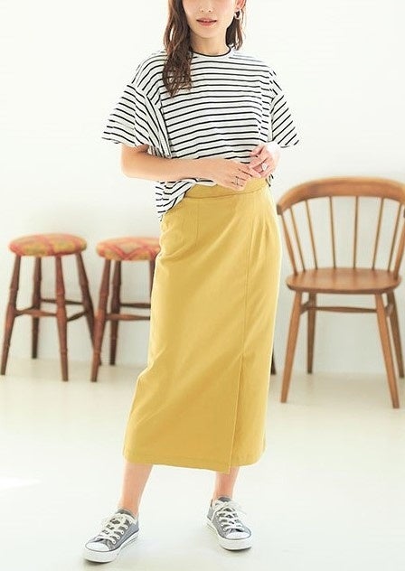 前後差のある丈感で、ウエストアウトして横から見ても きれいなシルエットを演出します。