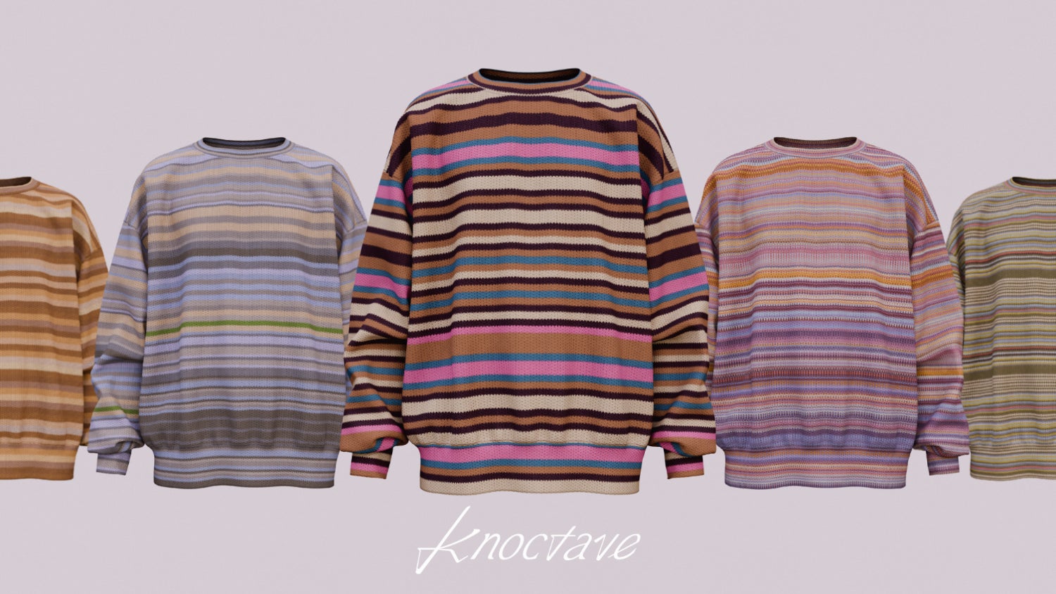 StripeKnitは、knoctaveが開発した音楽視覚化システム「StripeTrack」によって生み出されたニットウェアです。StripeTrackは、楽曲の音階やリズムを解析し、それを視覚的なデザインに変換するシステムで、音楽とファッションの融合を可能にします。
