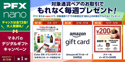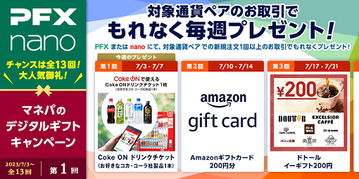 対象通貨ペアお取引でもれなく毎週プレゼント!マネパのデジタルギフトキャンペーン