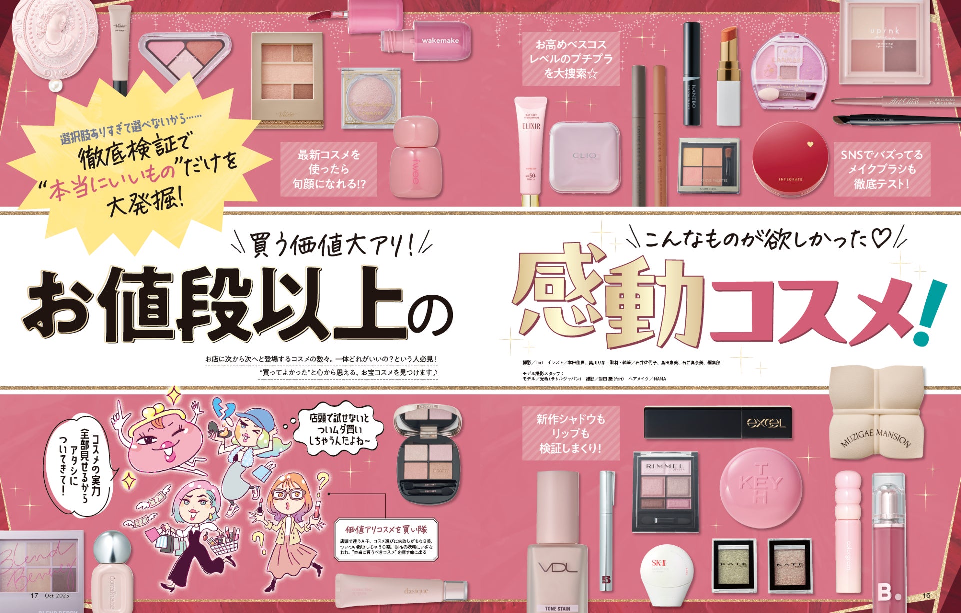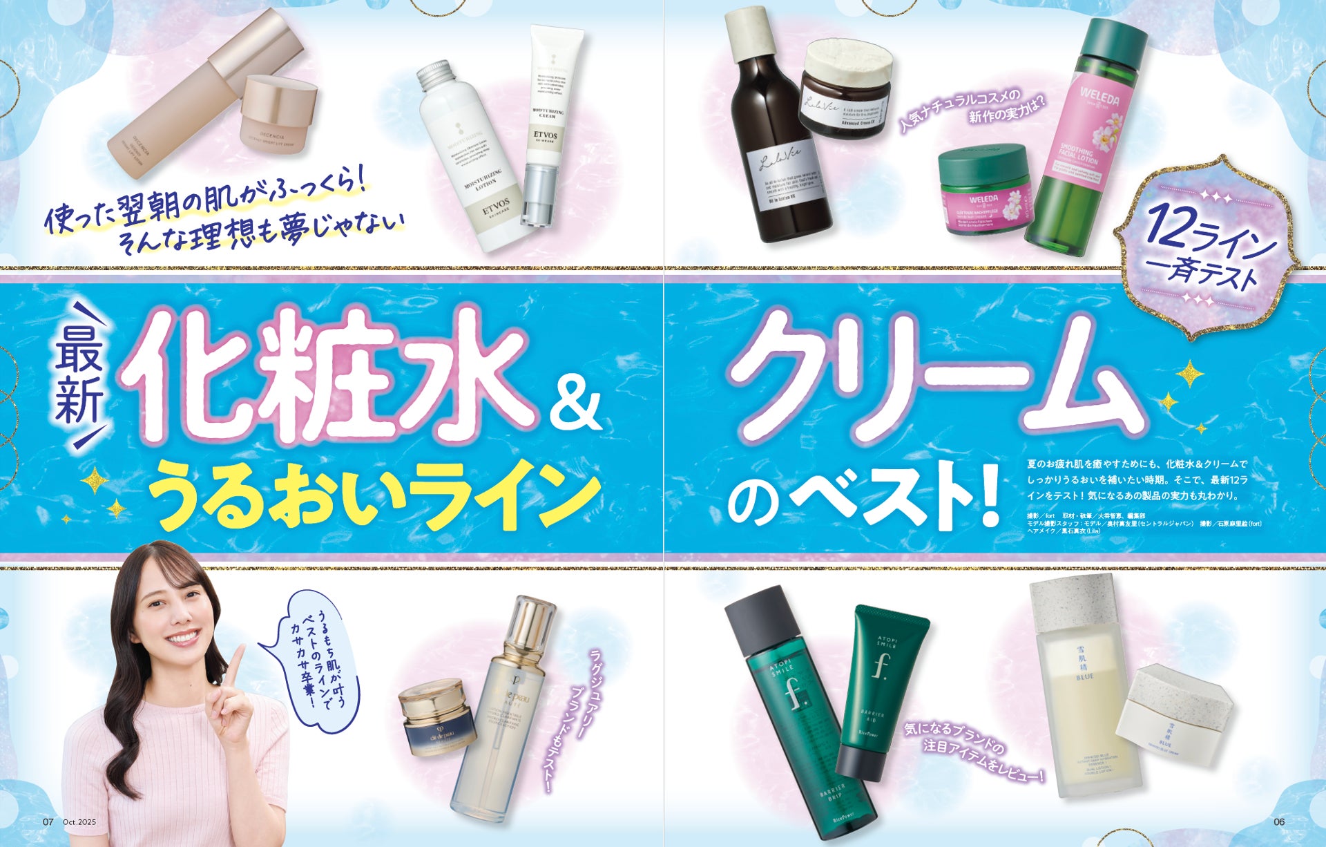 10月号は「お値段以上の感動コスメ」を総力特集! バズりコスメは本当に買うべき? 読者のみなさんの「こんなコスメが欲しかった」を叶えるおすすめを一挙大公開します! 他にも、化粧水&クリーム最新うるおいラインの実力を検証。また、時短で美髪が叶うヘア家電や、Qoo10メガ割で買うべきお宝スキンケアなど、今知りたい美容情報をたっぷりとご紹介します。