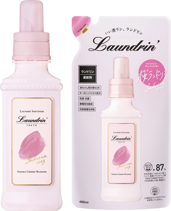 また、ランドリンは、発売当初より環境負荷軽減のため香料にマイクロカプセルを使用しておらず、限定商品のSAKURAでも詰め替え用も発売し、廃棄プラスチック量の削減に取り組んでいます。環境に配慮したエコフレンドリーなブランドです。