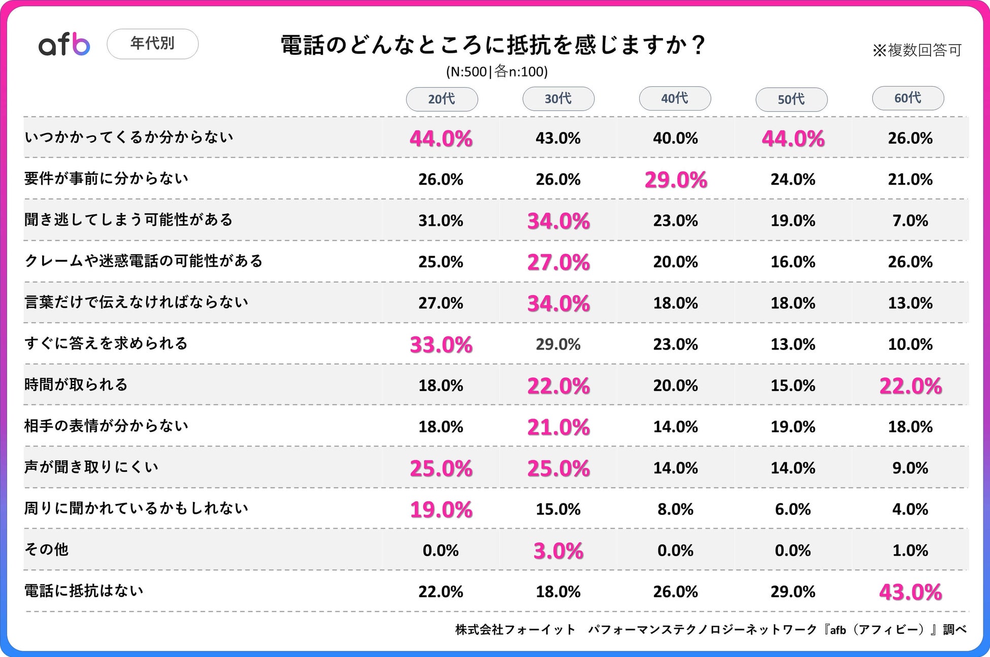 電話に抵抗を感じる理由で最も多かった回答は「いつかかってくるか分からない」、性別や年代でも差が生まれる結果に
