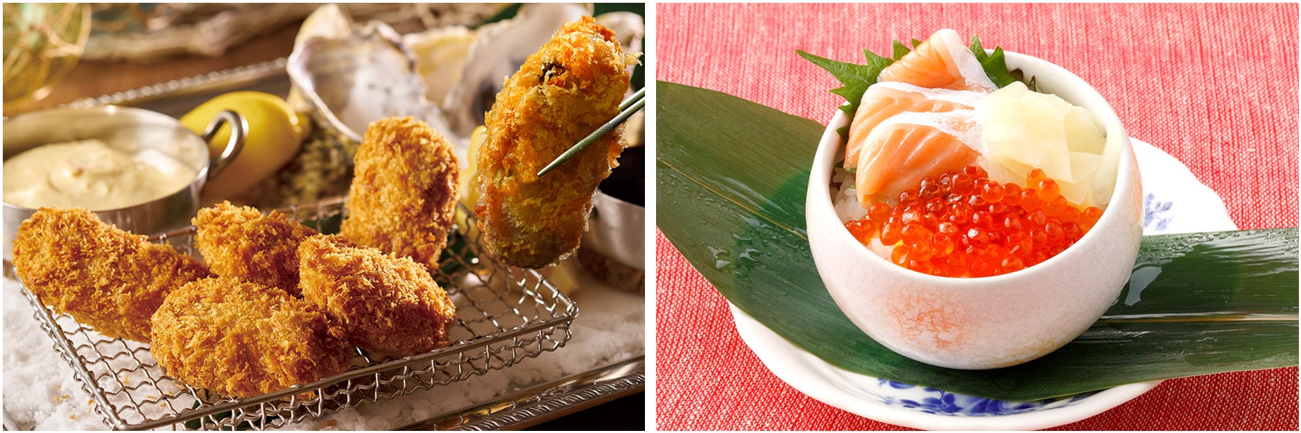 左:クリーミーな牡蠣の風味に酸味の効いたタルタルソースを合わせてどうぞ。