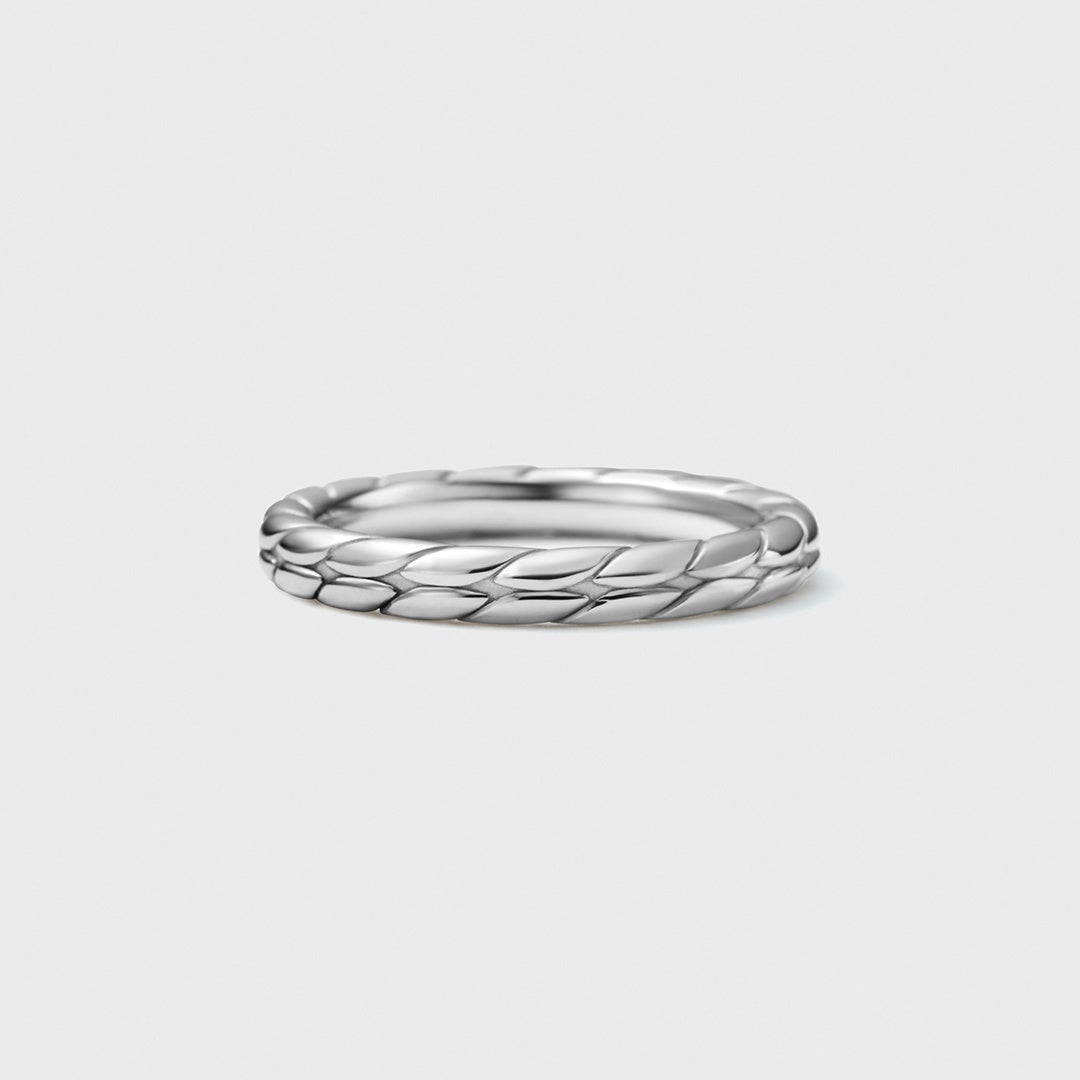 幸運のシンボルとして知られる白蛇のモチーフを表現したシリーズ。純白のパールとしなやかなチェーンで表現したネックレスは、蛇がパールをダイナミックにくわえる姿を精巧にジュエリーに落とし込みました。主役級のアイテムは、一点加えるだけでシンプルになりがちな冬のコーディネートに華やかさをプラスしてくれます。白蛇の鱗を表現したアームにプラチナコーティングを施したリングは程よいボリューム感で手元にアクセントをプラスしてくれます。指通りの滑らかさにもこだわっているので、お守り代わりとして活躍してくれます。