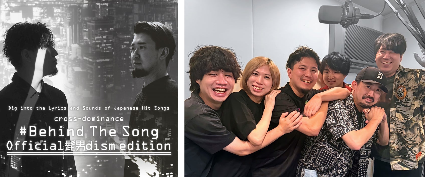Superfly、sumika、MISIA、eill、CHEMISTRY、V6・・・などの楽曲を手掛けるプロデューサー、かつマルチプレイヤーとしてOfficial髭男dismやBE:FIRSTのライブサポートも行う宮田‘レフティ’リョウ。そして、Steve AokiやKYGO、deadmau5、Black Coffeeらを配するNYのUltra Recordsの契約DJであるCARTOON。この2人は、アーティスツ・コレクティブ:cross-dominanceとして、「No Border」をコンセプトに世界基準の音楽をワールドワイドに配信しており、ラジオのスペシャルプログラム【#Behind The Song】も企画。日本のトップアーティストをゲストに、楽曲を生み出す「プロセス・テクニック・こだわり」を徹底的に聞き出していく1時間をプロデュースしています。今年5月~6月でオンエアされた第1弾でのゲストアーティストはsumikaでしたが、今回第2弾としてOfficial髭男dismの4人が登場します。