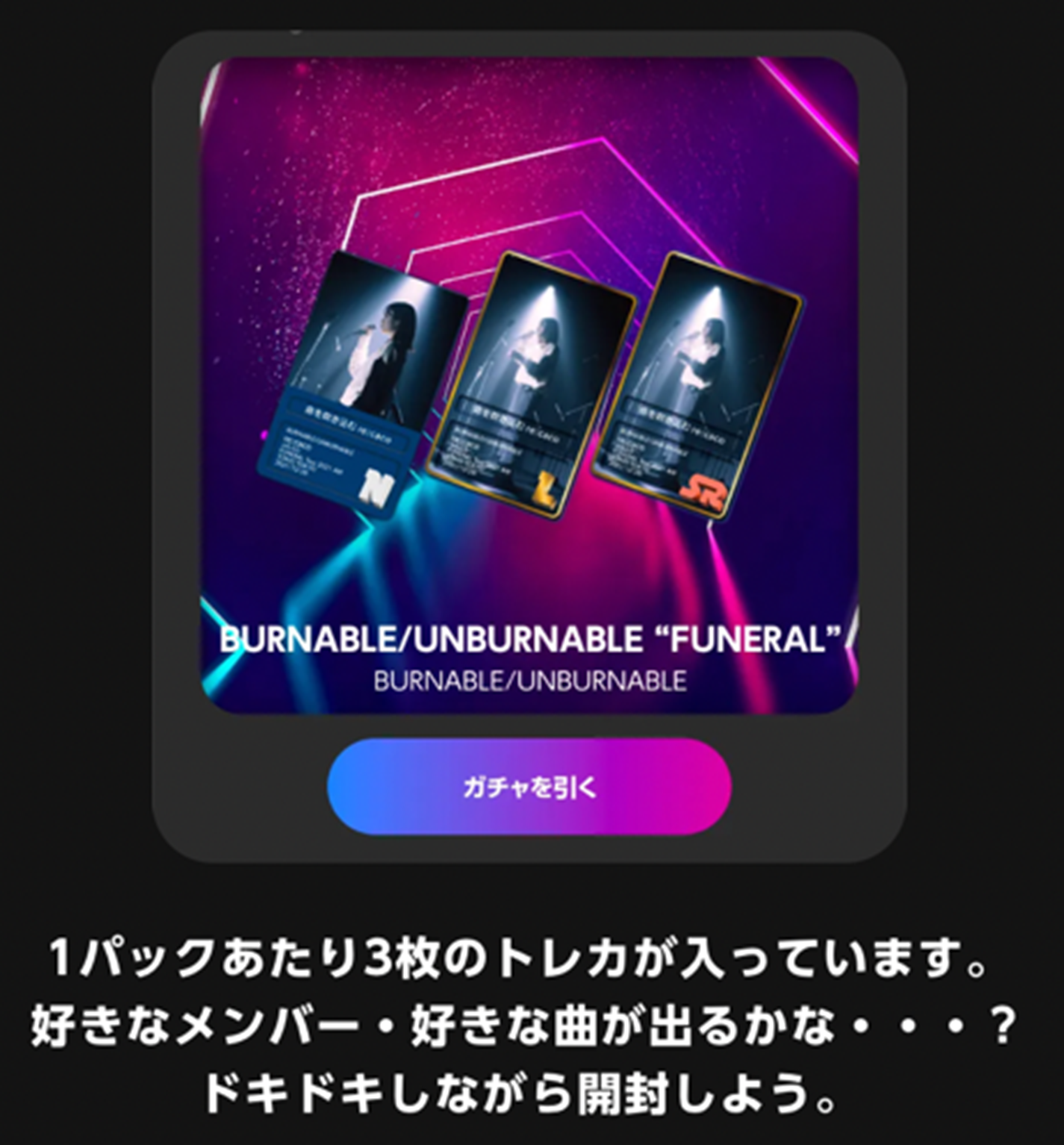 エンターテイメント領域のDXを志すスタートアップスタジオStudio ENTREが開発している音楽ライブNFTトレカ「MUVICA」にてライブ動画をNFTとして販売します。動画は数十秒の短尺動画の3枚パックでトレカ形式に変換されます。なお、販売対象はオリジナル楽曲でのライブ映像のみとなります。