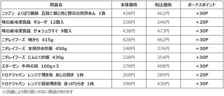 1月31日まで、冷凍食品やカット野菜などにボーナスポイントプレゼント