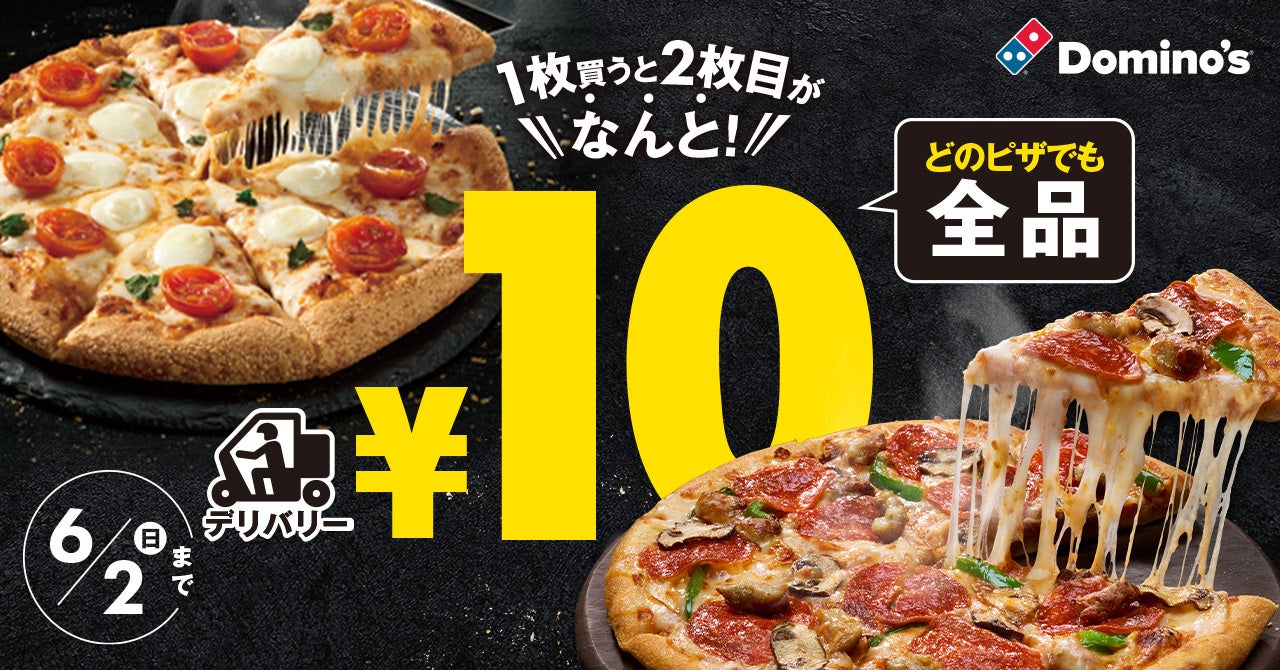 ドミノ・ピザ、『ピザ1枚買うと2枚目10円』5月24日(金)~6月2日(日)10日間開催!