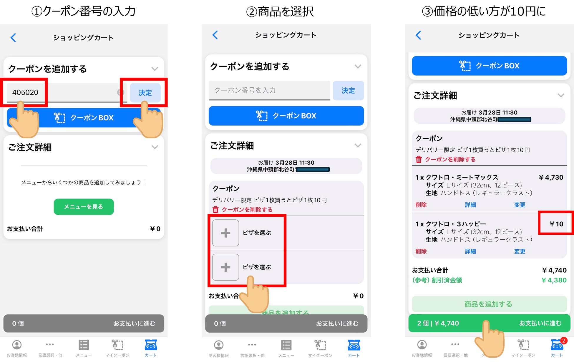 ■「ピザ1枚買うと2枚目10円」 注文方法】