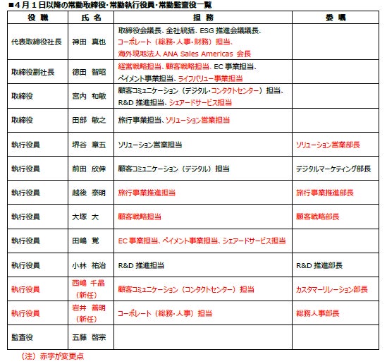 ANA X株式会社は、2025年4月1日付で役員体制の変更を行いますのでお知らせいたします。