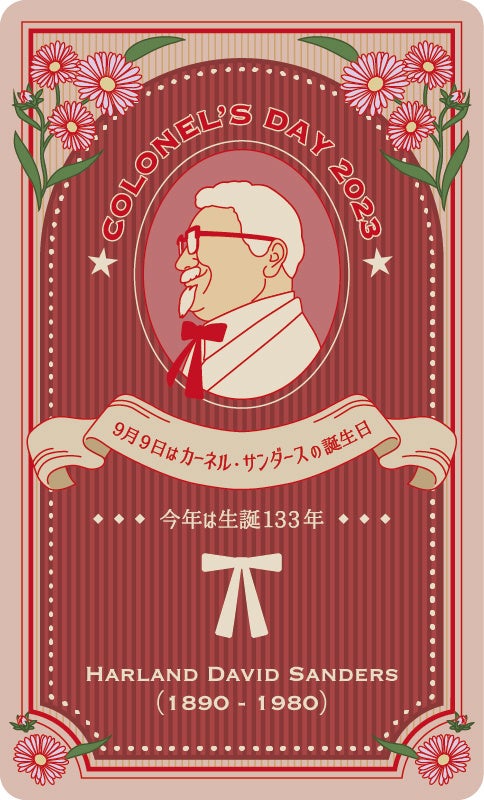 KFC創業者カーネル・サンダースの誕生日である9月9日「カーネルズ・デー」。21年前の2003年、KFC創立日である7月4日に、日本記念日協会に登録いたしました。この先も、カーネル・サンダース、そしてKFCが皆さまから愛される存在であり続けるため、従業員一同「カーネルズ・デー」を盛り上げてまいります。