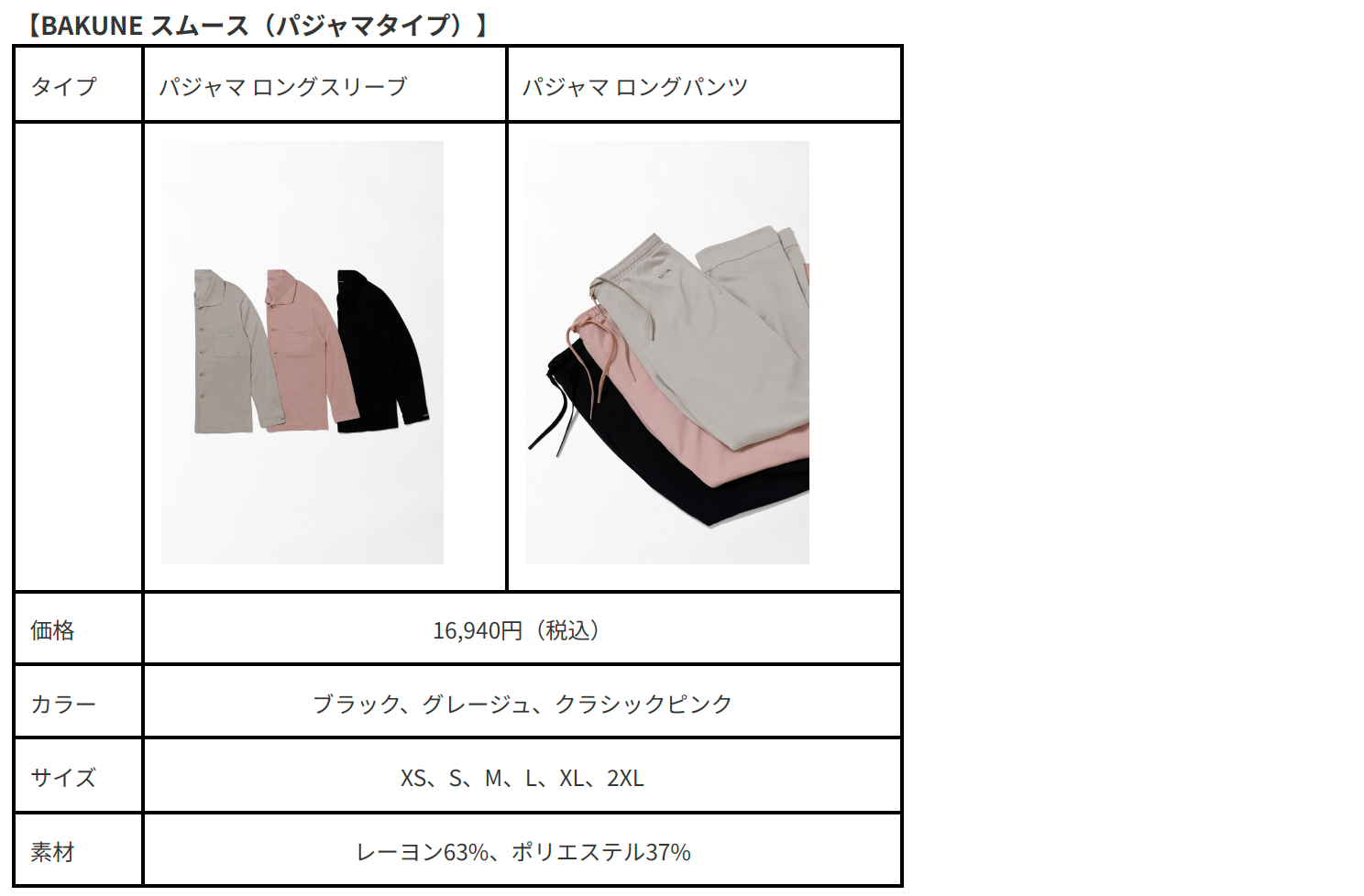 テンシャルは、日々お客様の声に耳を傾け、自分のライフスタイルに合った素材を選べる豊富なラインナップを実現することを大切にしてきました。今回の2製品も、自然な寝返りをサポートする「BAKUNE Motion Design®」と特殊機能繊維「SELFLAME®」による血行促進で疲労回復をサポートするBAKUNE本来の機能はそのままに、素材の選択肢をさらに広げるパジャマとして登場します。