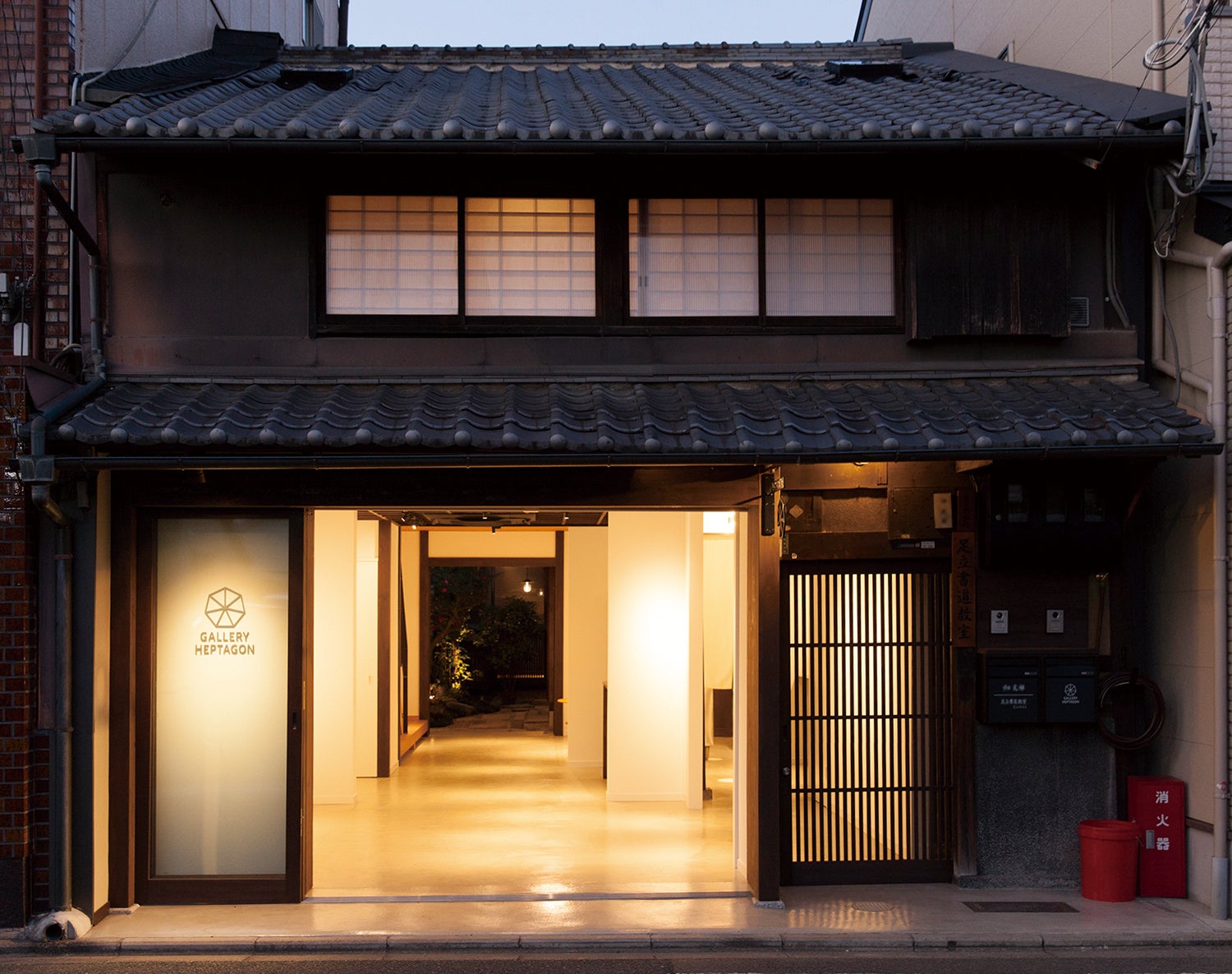 ヘプタゴンとは「七角形」のこと。人間の不完全さやデコボコした個性への共感を割り切れない「不完全」な多角形である七角形に重ねています。「うなぎの寝床」型の京町家を改修し、中庭をのぞむ風通しの良い空間でジャンルにとらわれない展覧会を展開する他、茶会や食などを含むイベントやワークショップも開催し「アート」と「生活」の両面からさまざまな発信を行っています。(HP:https://www.heptagonworks.com)