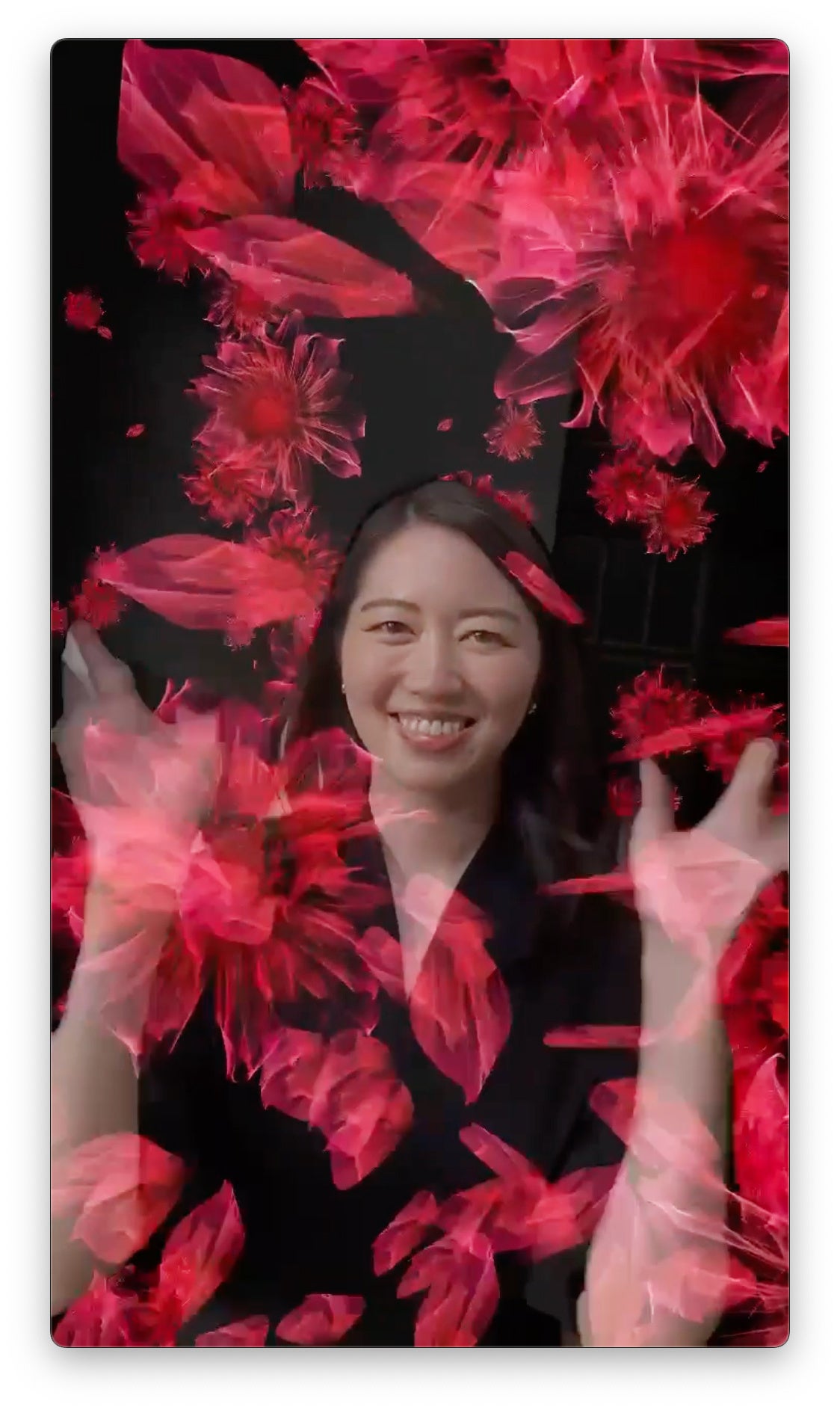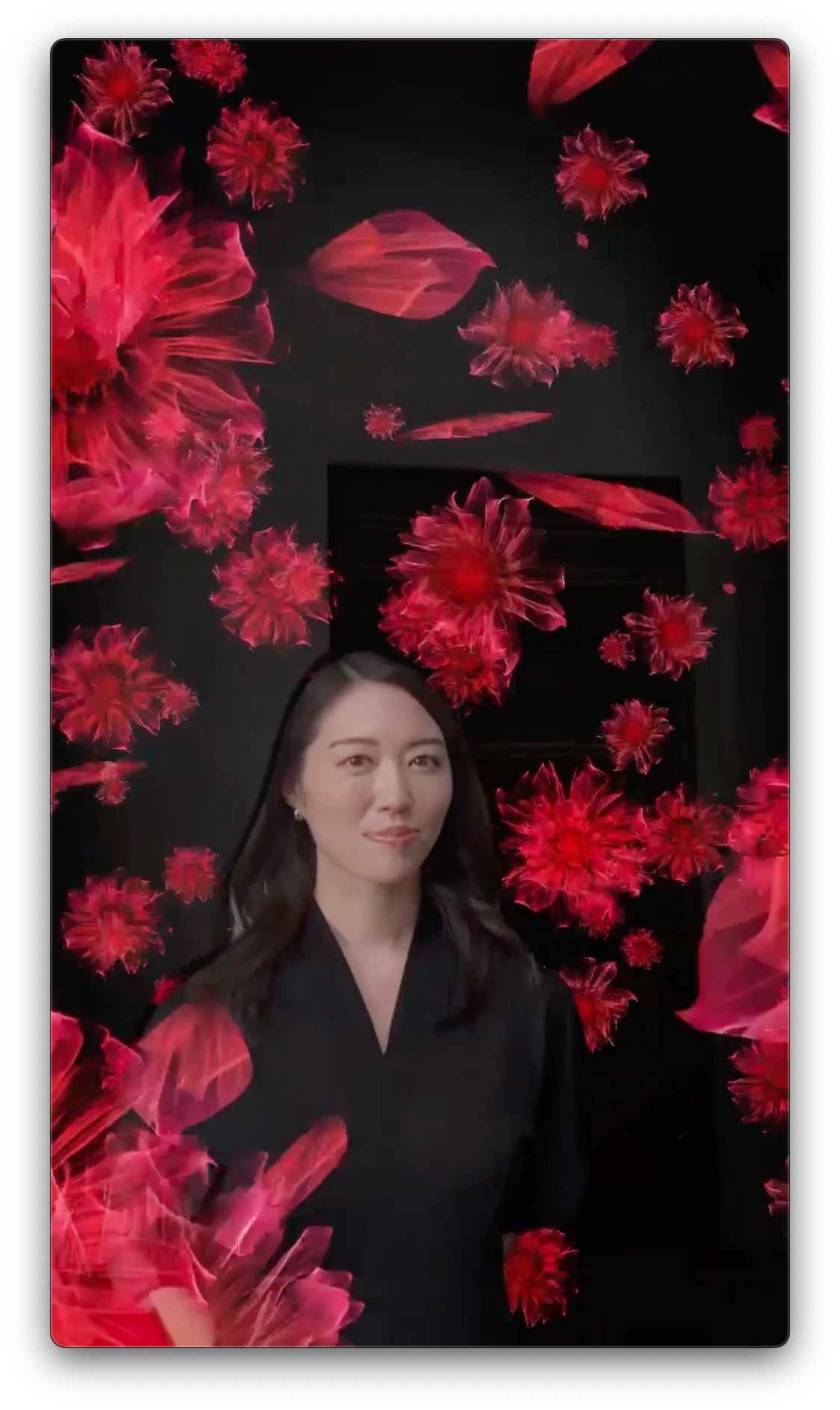 AGEBILITYのシンボルであるダリア約800個が360度浮遊する、神秘的な世界の中に入り込んでいただき、ぜひ今日まで積み上げてきた経験がつまった、あなただけの特別な笑顔を向けてみてください。その瞬間、画面いっぱいにあなたの未来の可能性を応援するダリアが咲き誇ります。