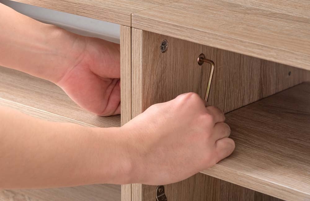 120cm、150cm、180cm、210cmのセット販売と単品で1台ずつ購入することができるのでお部屋のサイズやライフスタイルに合わせて横につなげて壁に沿って一列に設置することや、テレビ台として複数台つなげ、残りはキャビネットとして使用することもできます。横につなげる際にはそれぞれ2か所のねじ穴から挟み込むように連結ボルトを締めるだけでずれることなく簡単に連結することが可能です。