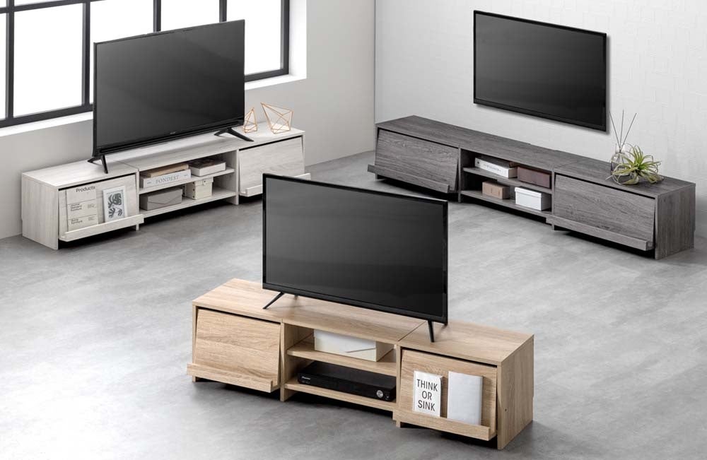 TV台の新定番!“繋げて魅せる”ユニット式テレビ台 伸縮・フラップ扉タイプも揃えた全3モデルが新発売!