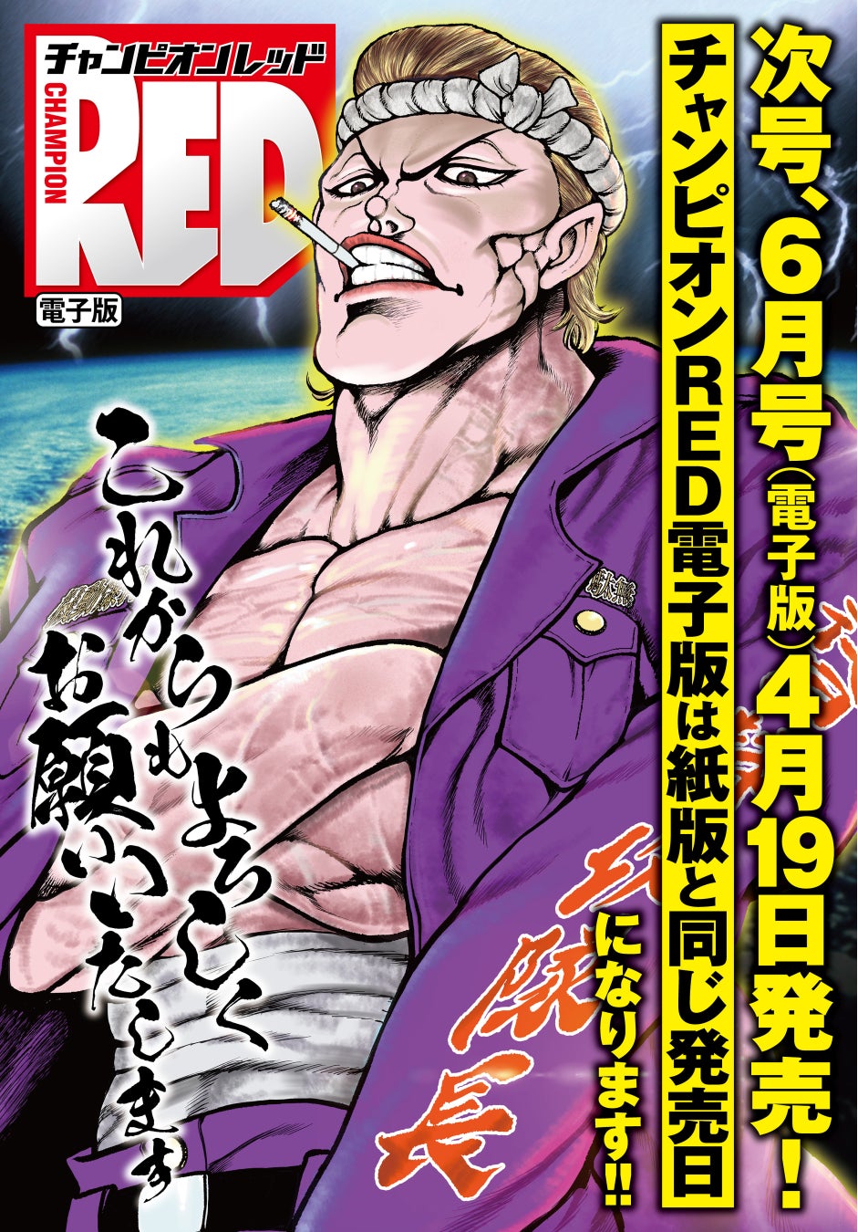 このサイマル化を記念して「月刊チャンピオンRED2023年6月号(電子版)」は、「聖闘士星矢 海皇再起 RERISE OF POSEIDON」と「バキ外伝 花のチハル」の1話と2話をそれぞれ収録した「電子特装版」としてお届けいたします! これからも変わらぬご愛顧、よろしくお願いいたします!