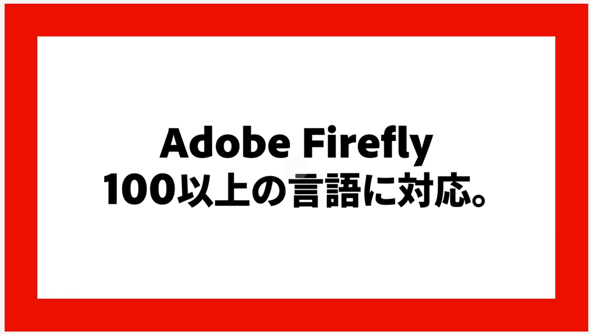 アドビは本日、Adobe Firefly ( https://www.adobe.com/jp/sensei/generative-ai/firefly.html ) web版で、100以上の言語へのテキストプロンプト入力のサポートを開始することを発表しました。また、ユーザーインターフェイスを20か国語以上に拡大し、日本語をはじめ、フランス語、ドイツ語、スペイン語、ブラジルポルトガル語、ポルトガル語のバージョンを本日から提供開始します。現在ベータ版で展開しているAdobe Firefly web版は、ユーザーの声を反映しながら日々開発を進めています。