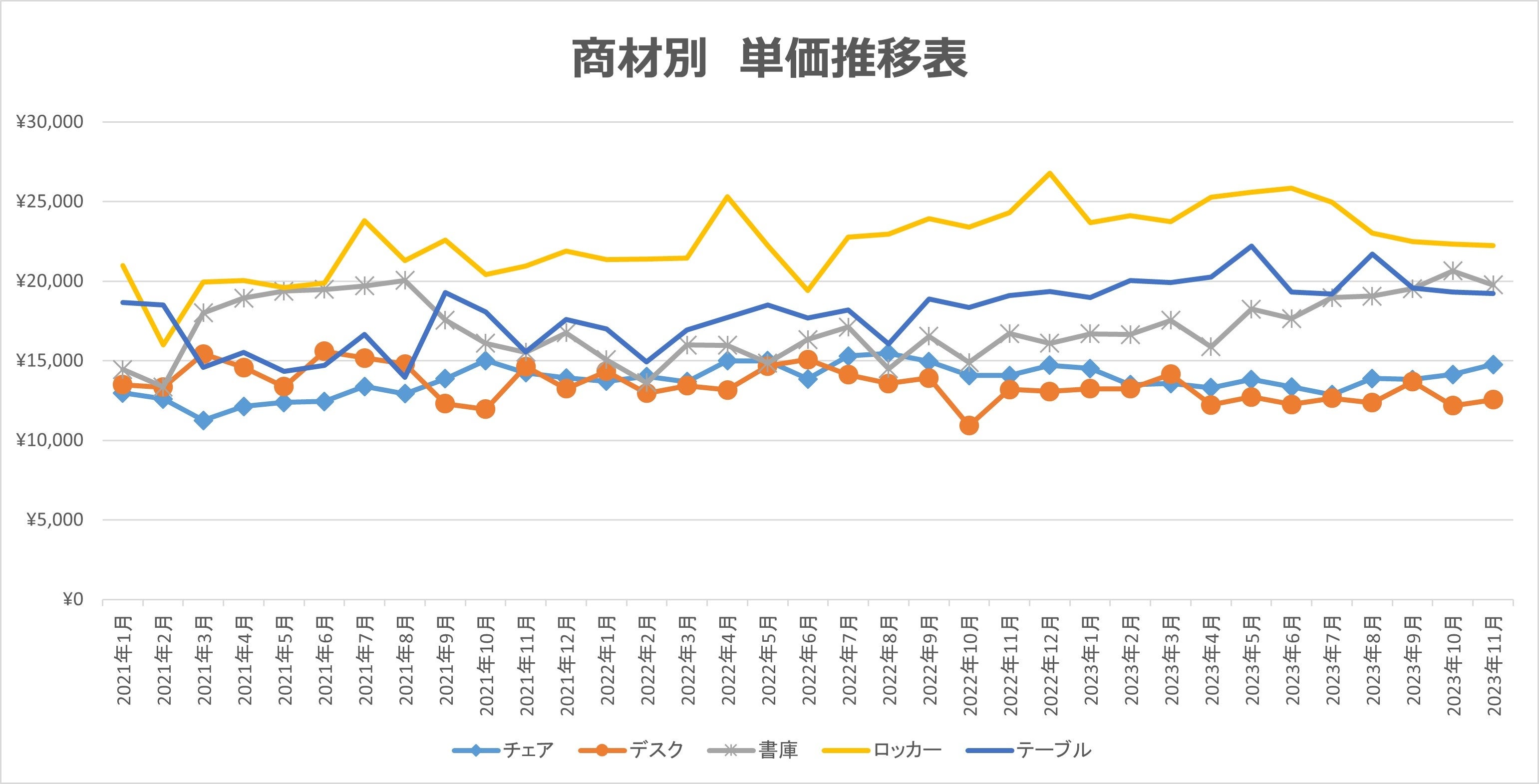 株式会社オフィスバスターズ(東京都中央区 代表取締役社長:熊谷 正慶 以下当社)は、2023年11月度の中古オフィス家具指数を取りまとめました。毎月当社の中古オフィス家具動向を広く皆様へお伝えすることで、当社をご利用いただいた法人及び個人の方々の動向や推移などをご案内しています。