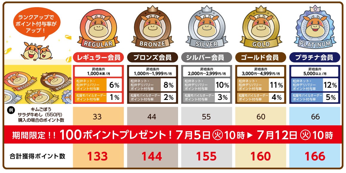 7月5日10時~7月12日10時まで、松弁ネットを利用して「キムごぼうサラダ牛めし」「ビビン牛めし」関連メニューをご注文頂けると、100ポイントプレゼントいたします。