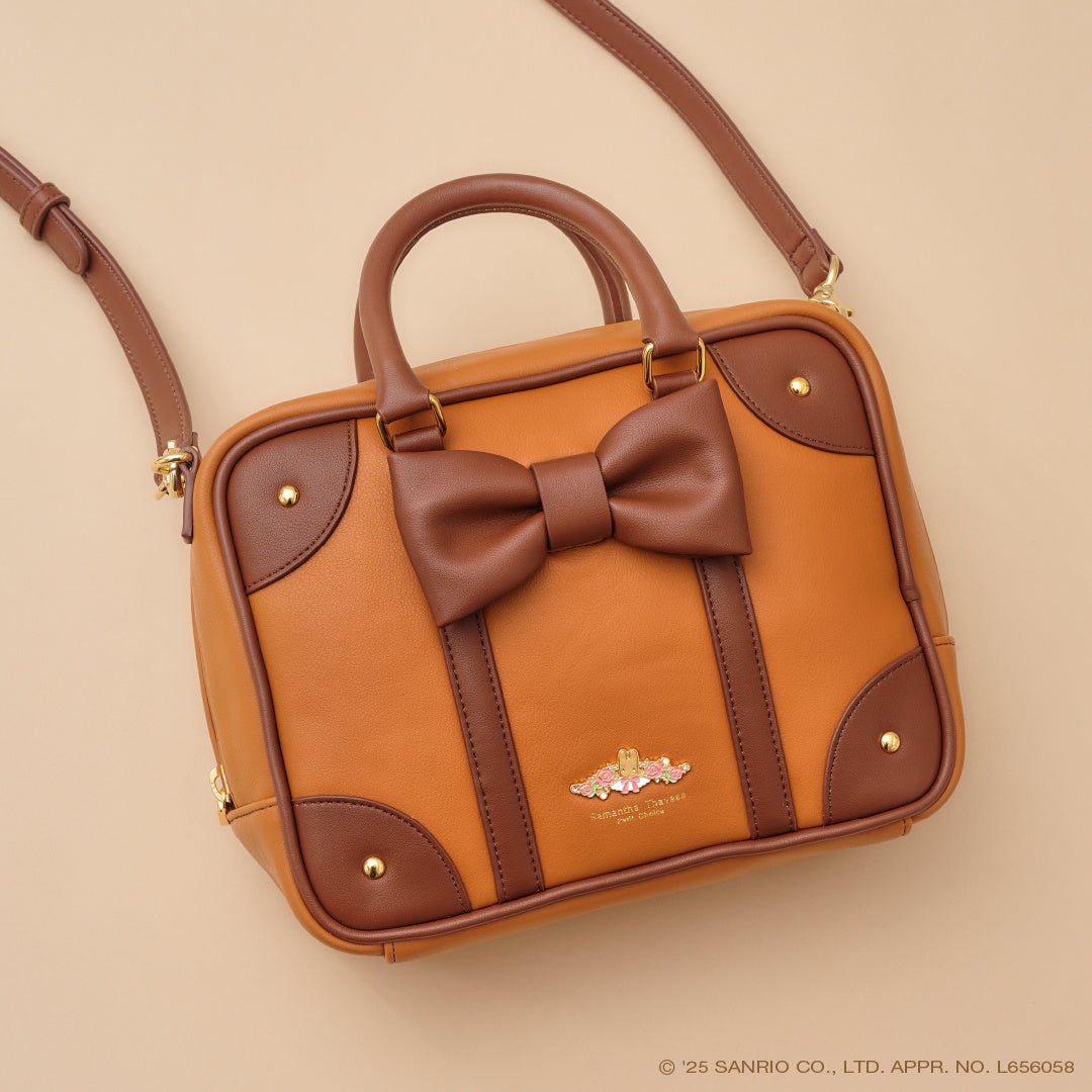 「マロンクリーム」がおでかけの時に持っていそうなトランクをイメージしたショルダーバッグ。大きいリボンがポイントで、存在感たっぷりの主役アイテムとしてお持ちいただけます。