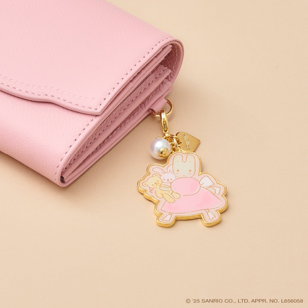ぬいぐるみと一緒に過ごしている「マロンクリーム」と帽子をかぶった「マロンクリーム」のデザインを使用したキュートなチャーム。
