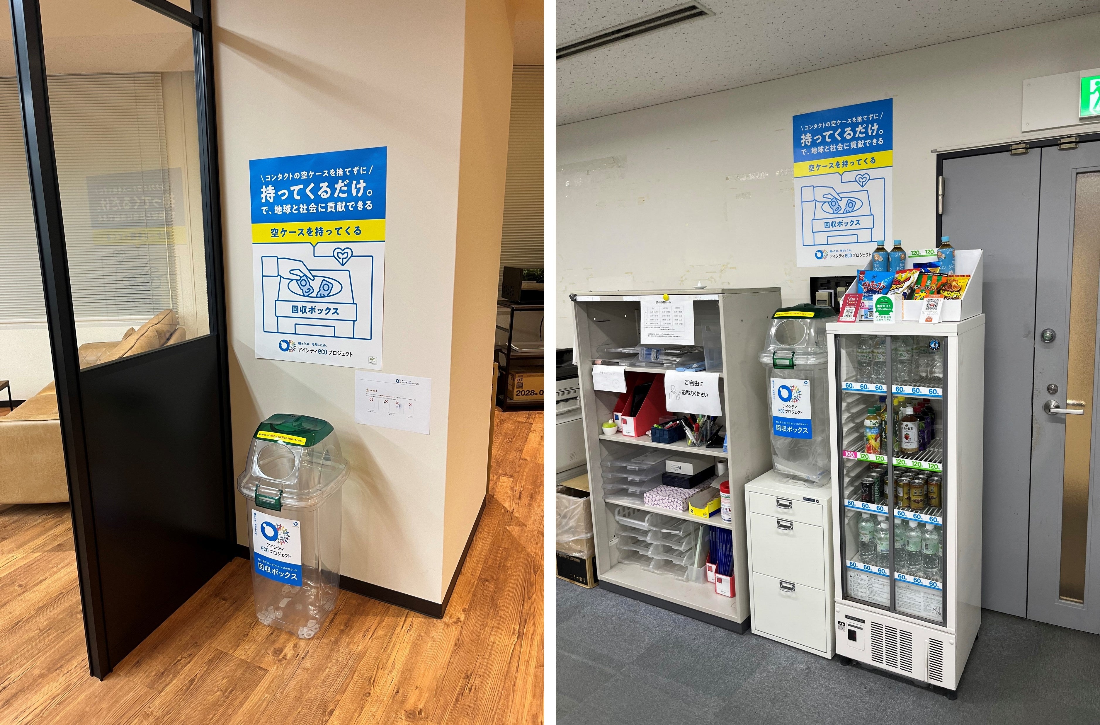 当社は現在、全国17か所に拠点を構えておりますが、各拠点における勤務者のコンタクト利用人数を踏まえて設置場所を検討し、今回は本社を含む6拠点に回収ボックスを設置いたしました。また、設置に合わせ社内SNSにて従業員に向けて本プロジェクトについての情報を発信し、理解と協力を呼びかけました。今後も継続的に情報発信を行いプロジェクトへの協力を促進し、これと同時に従業員におけるSDGsへの関心も高めながら循環型社会貢献の輪を広げていけたらと考えています。