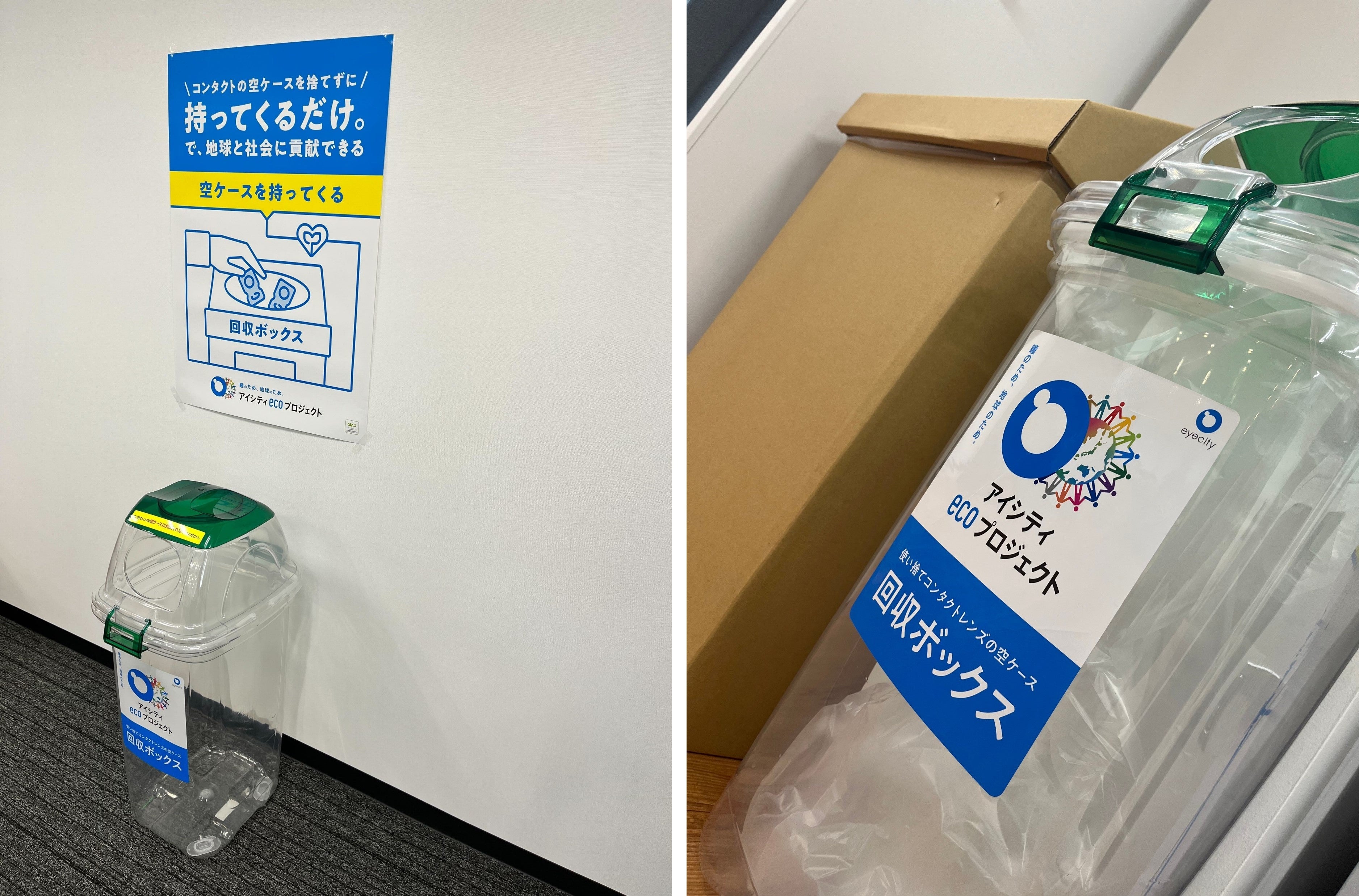 「アイシティ ecoプロジェクト」は、コンタクトレンズ専門店「アイシティ」を事業展開するHOYA社が推進するリサイクル活動です。具体的には、リサイクルが可能な使い捨てコンタクトレンズの空ケースを対象に、全国の学校・企業・自治体に専用ボックスを設置し回収するという取組です。このプロジェクトでは、3つの社会貢献(1.空ケースの再資源化による環境保全、2.障がい者の自立・就労支援、3.(公財)日本アイバンク協会への寄付)へつないでいくことを目的としています。2010年に同社がコンタクトレンズ業界で初めて取組を開始し、今年で13年目を迎えました。これまで、590.84tの空ケースが回収され、このリサイクルの対価13,143,162円が(公財)日本アイバンク協会へ寄付されています。※記載の回収量・寄付額は2023年9月時点