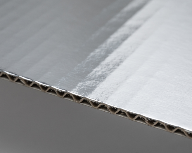 素材:アイザック製「クールダン」(ダンボール原紙+PETアルミ蒸着フィルム)