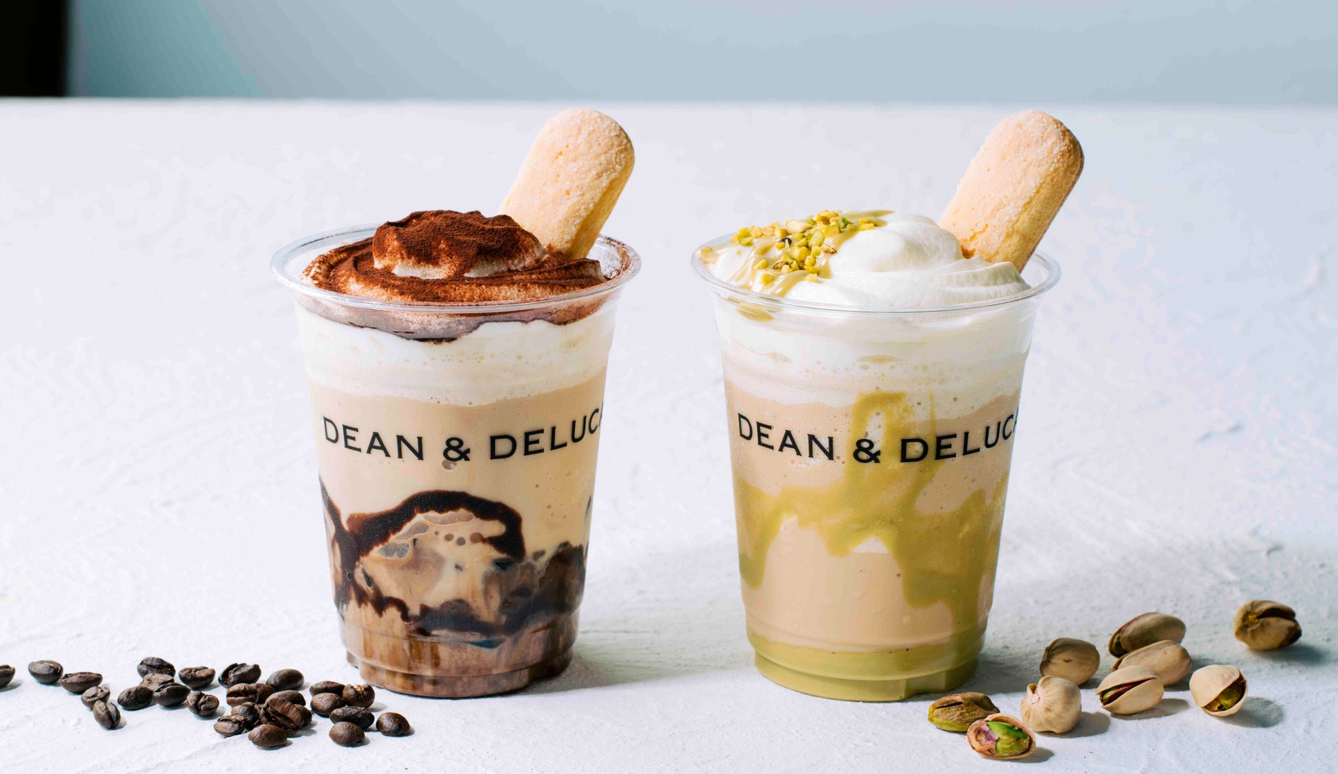 「ティラミスフラッペ」を形づくるおいしい層には、つるんとしたのど越しのコーヒーゼリーを。マスカルポーネクリームの分量も増やし、ティラミスの風味や飲みごたえはそのままに、より軽やかにおたのしみいただけます。「ピスタチオのティラミスフラッペ」は、ソースの配合をアップデート。ピスタチオをふんだんに使ったペーストを使用し、ナッツの純度を高めました。エスプレッソとピスタチオ本来の芳ばしい風味が贅沢に広がります。